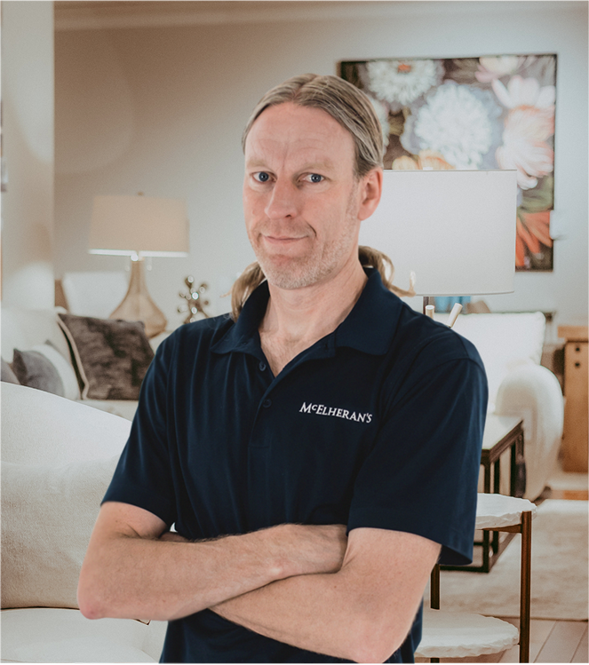 If there’s one thing we can expect from Rob, it’s that he always finds a way to do the unexpected. His superpower is the ability to problem-solve with speed, expertise, and a cool head. For over ten years, McElheran’s customers have confidence that their furniture delivery is in the most capable hands. Thanks to Rob’s commitment to excellence in the warehouse, everyone breathes easily at delivery time.